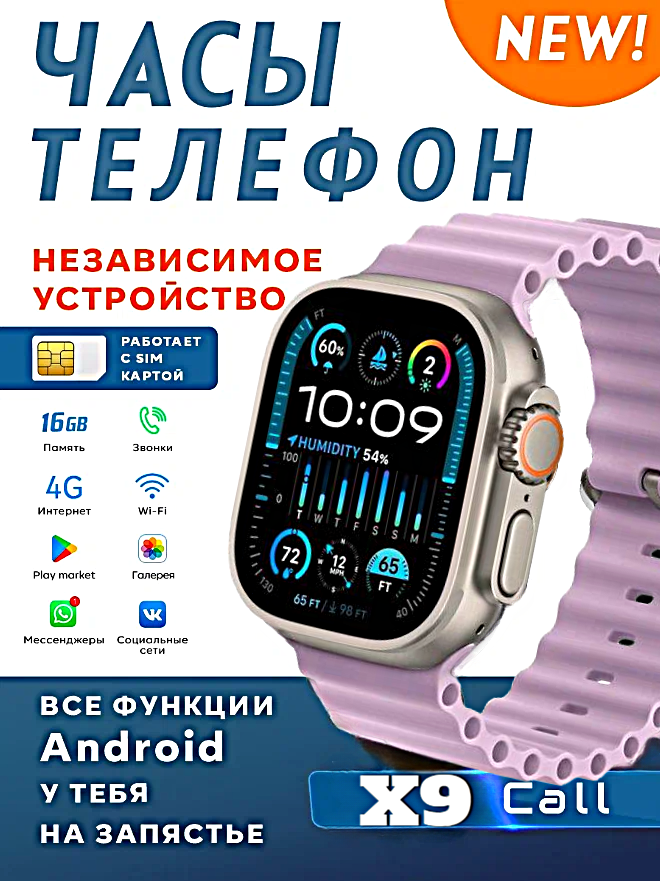 Смарт часы X9 CALL Умные часы 4G PREMIUM AMOLED, WiFi, GPS, Галерея, Браузер, Bluetooth Звонки, Сиреневый: сравнение цен, характеристики, фото, актуальное наличие и цены.
