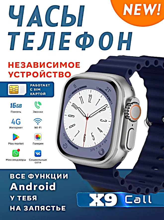 Смарт часы X9 CALL Умные часы 4G PREMIUM AMOLED, WiFi, GPS, Слот для SIM карты, Галерея, Браузер, Темно-синий: сравнение цен, характеристики, фото, актуальное наличие и цены.