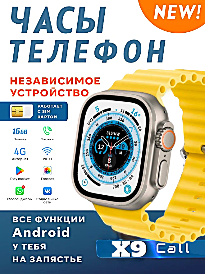 Смарт часы X9 CALL Умные часы 4G PREMIUM AMOLED, WiFi, GPS, Слот для SIM карты, Галерея, Браузер, Желтый: сравнение цен, характеристики, фото, актуальное наличие и цены.