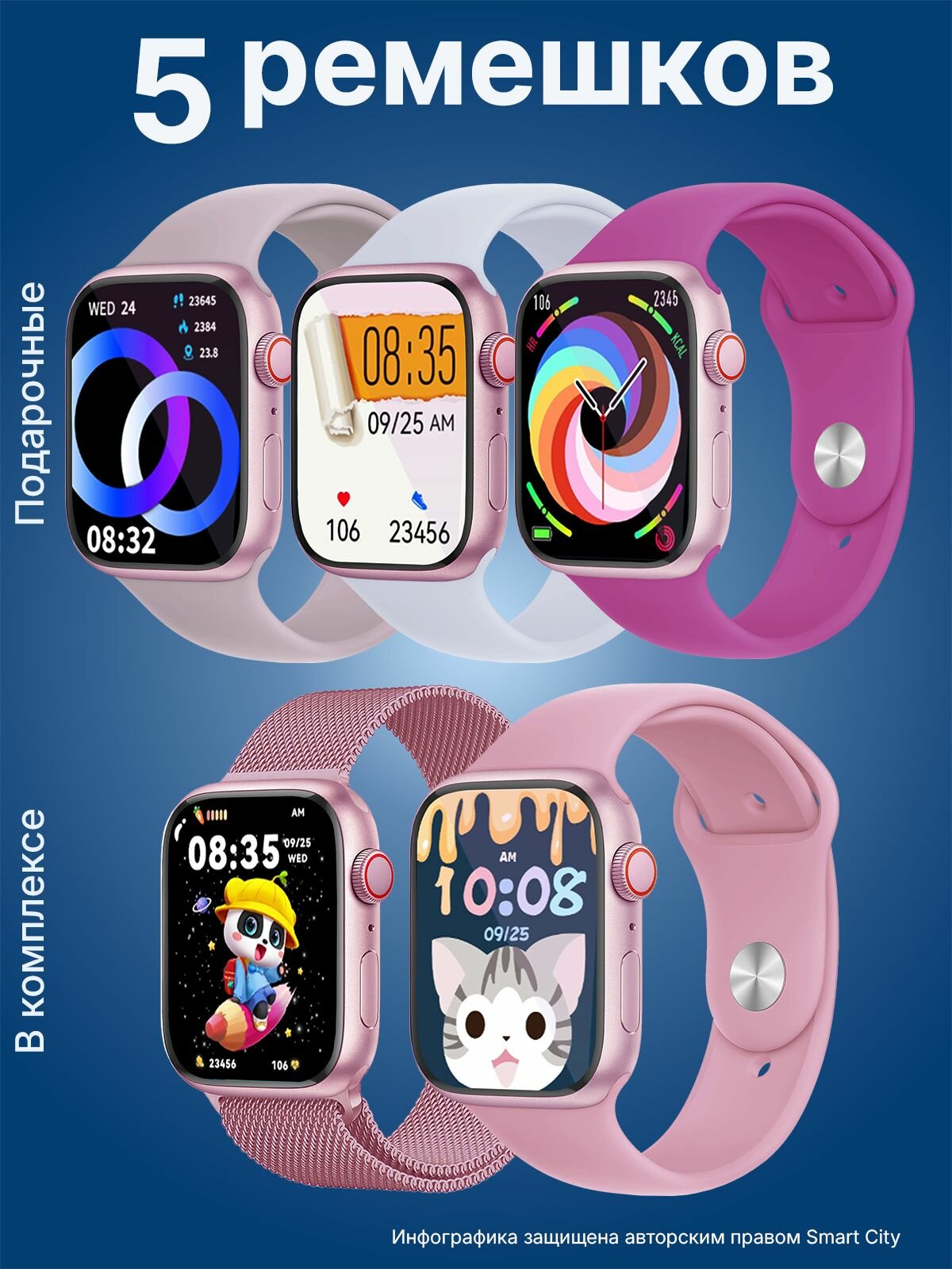 Смарт часы женские SmartX Mini для девочек + 5 ремешков / Умные часы на узкое запястье