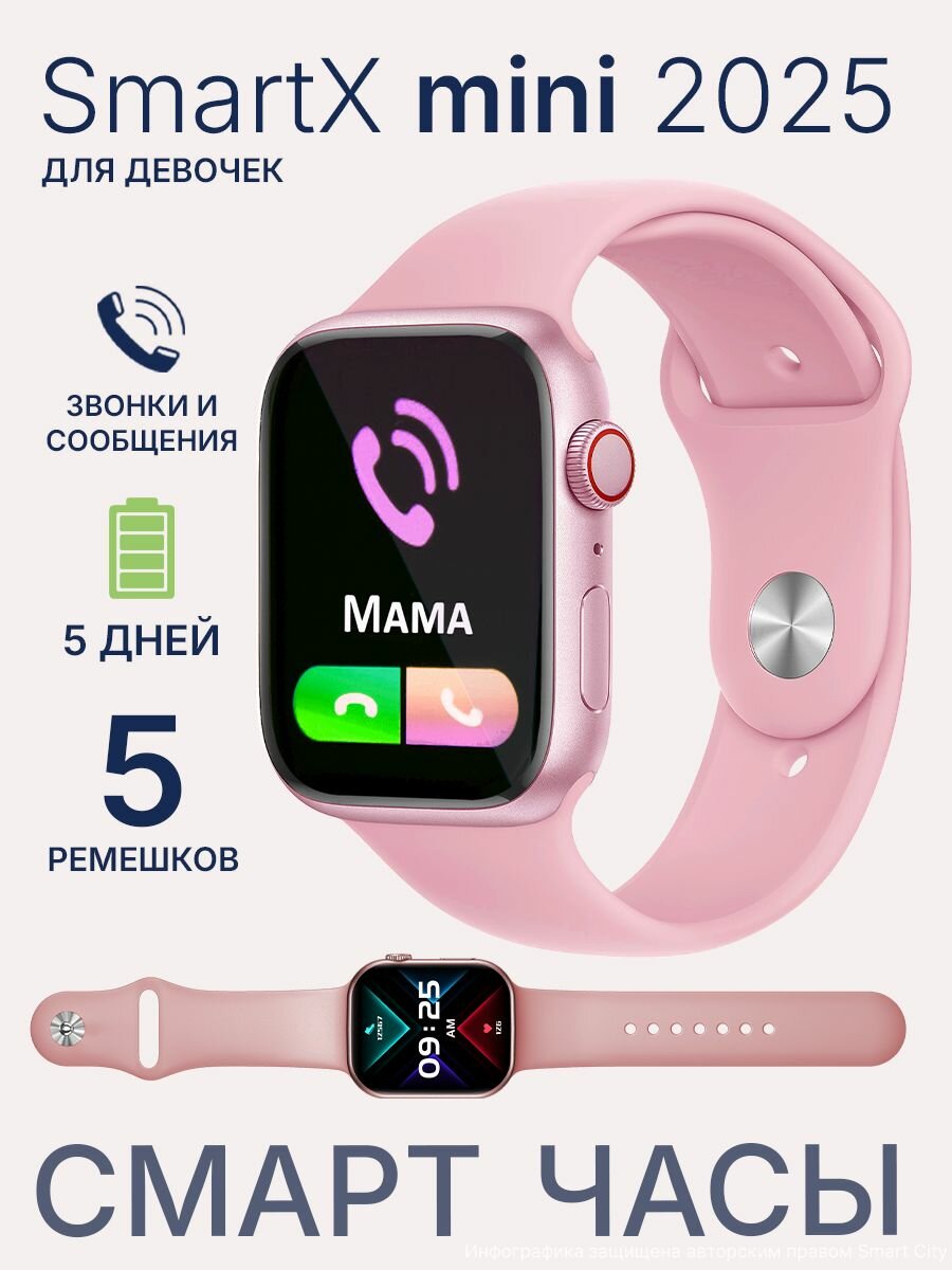 Купить Смарт часы женские SmartX Mini для девочек + 5 ремешков / Умные часы на узкое запястье с доставкой по всей России.