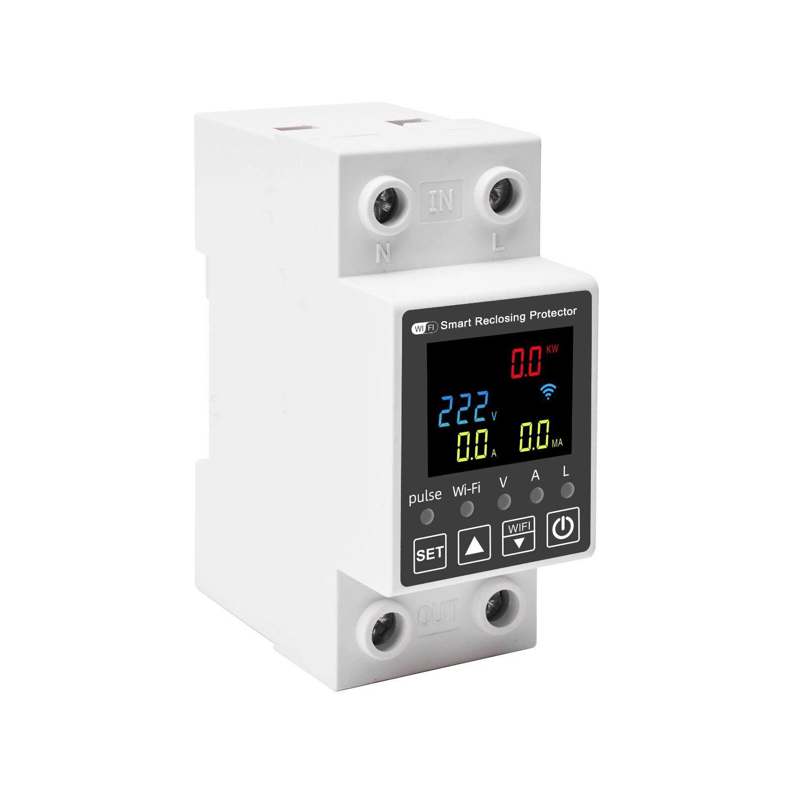 Купить Смарт-энергомер с WiFi, 63A, защита от утечки тока, напряжения, автоматическое переключение, реле, выключатель, цепной 차단чик, Smart Life, AC 220V, 50/60Hz, диапазон напряжения 80V-300V, защита от перегрузки 0.11A-63.0A, перепад напряжения с доставкой по всей России.