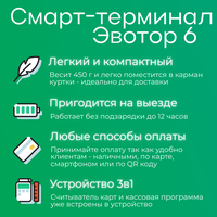 Выбирая смарт-терминал Эвотор 6 с эквайрингом, вы получаете современное, надежное и функциональное решение для вашего бизнеса.