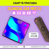 Купить Смарт ТВ приставка DGMedia X88 Pro10, Андроид медиаплеер 4/32 Гб, Wi-Fi, 4K, RK3318 Quad-Core 64bit Cortex-A53 с доставкой по всей России.
