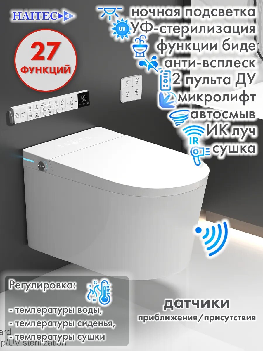 Смарт унитаз подвесной HAITEC HT-EST953WE автоматизированный с встроенным бачком: сравнение цен, характеристики, фото, актуальное наличие и цены.