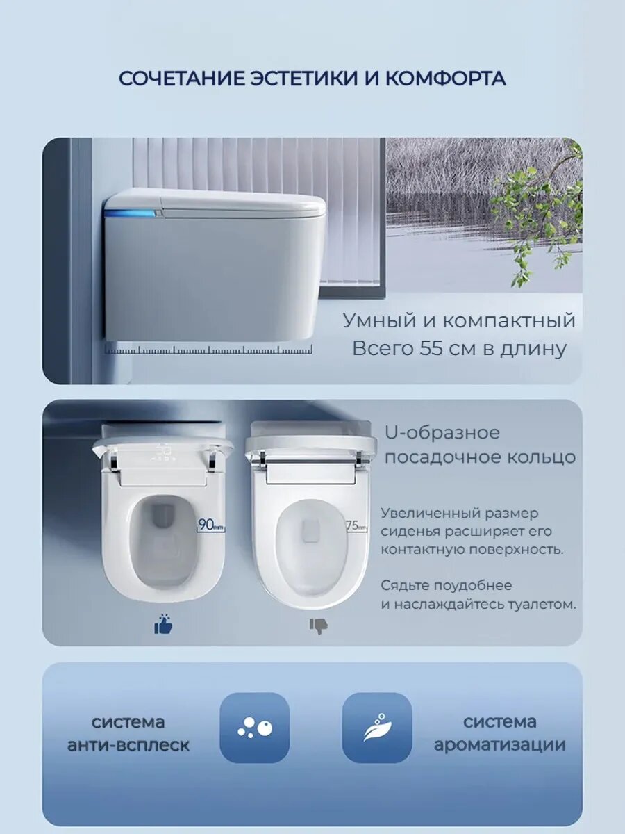 Купить Смарт унитаз подвесной HAITEC HT-ESTY3WE автоматизированный с встроенным бачком с доставкой по всей России.