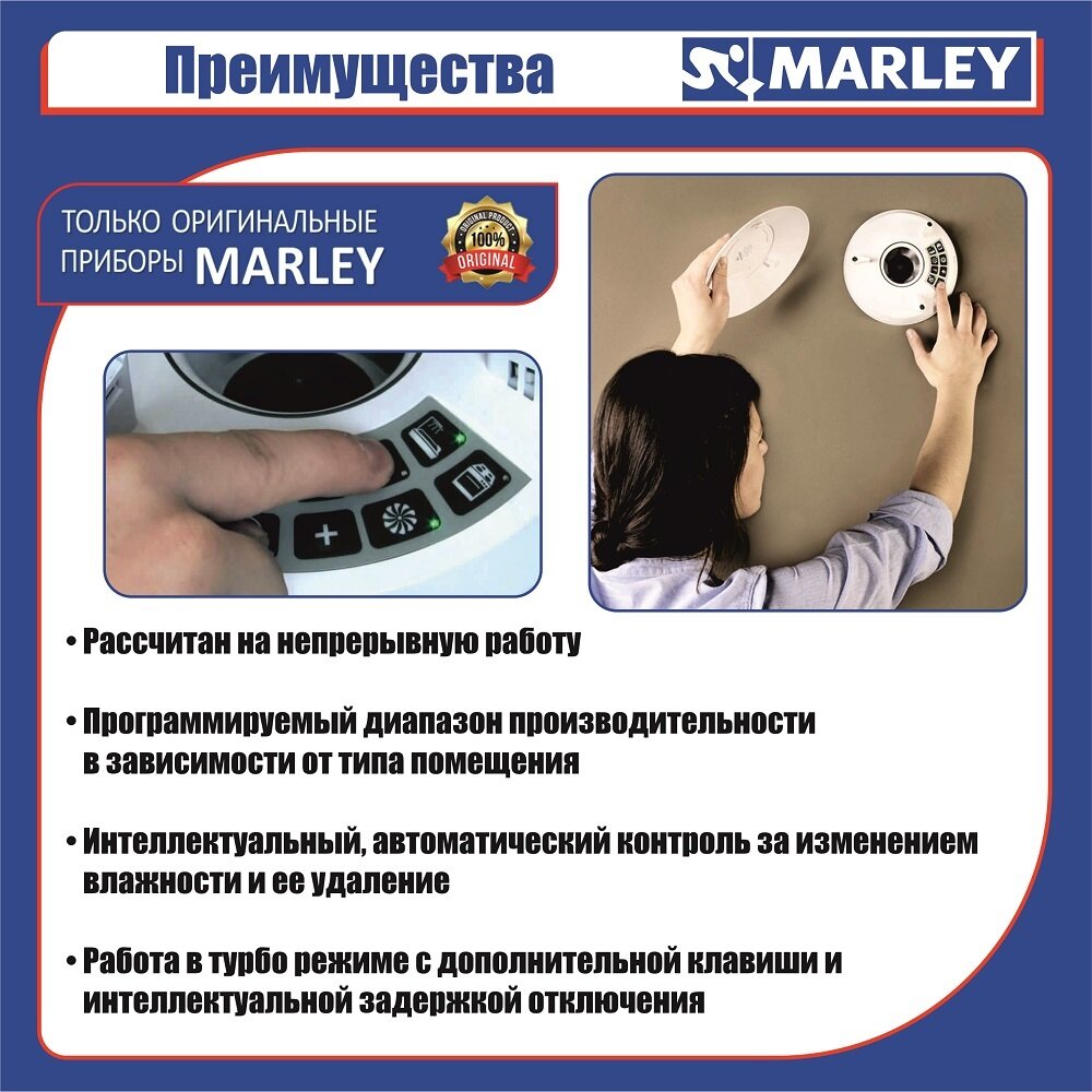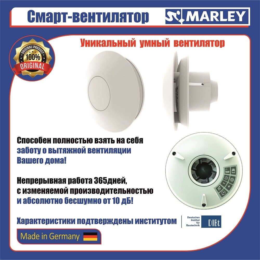 Компания «Marley» — немецкий производитель локальных вентиляционных решений высочайшего качества, характеристики которых подтверждены сертификатом DIBT (Немецкого института строительных технологий — наиболее авторитетного независимого органа по подтверждению характеристик товаров в отрасли), а все предприятия компании «Marley» сертифицированы по наивысшем стандартам ISO для: рабочих процессов (ISO 9001), экологического менеджмента (ISO 14001) и использования электроэнергии — энергоэффективности (ISO 50001).