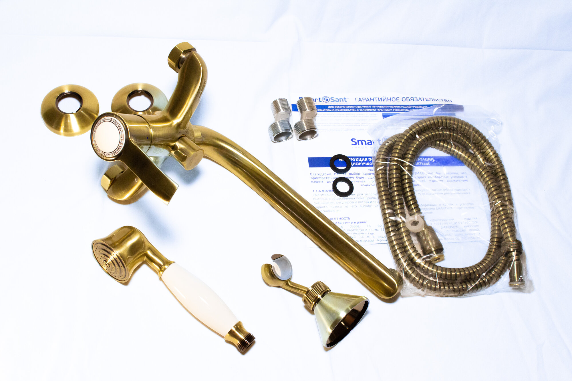 Купить Смарт-Винтаж смеситель для ванны и душа, излив 250мм, керамический переключатель, с аксессуарами, бронза (SM263512BR) с доставкой по всей России.