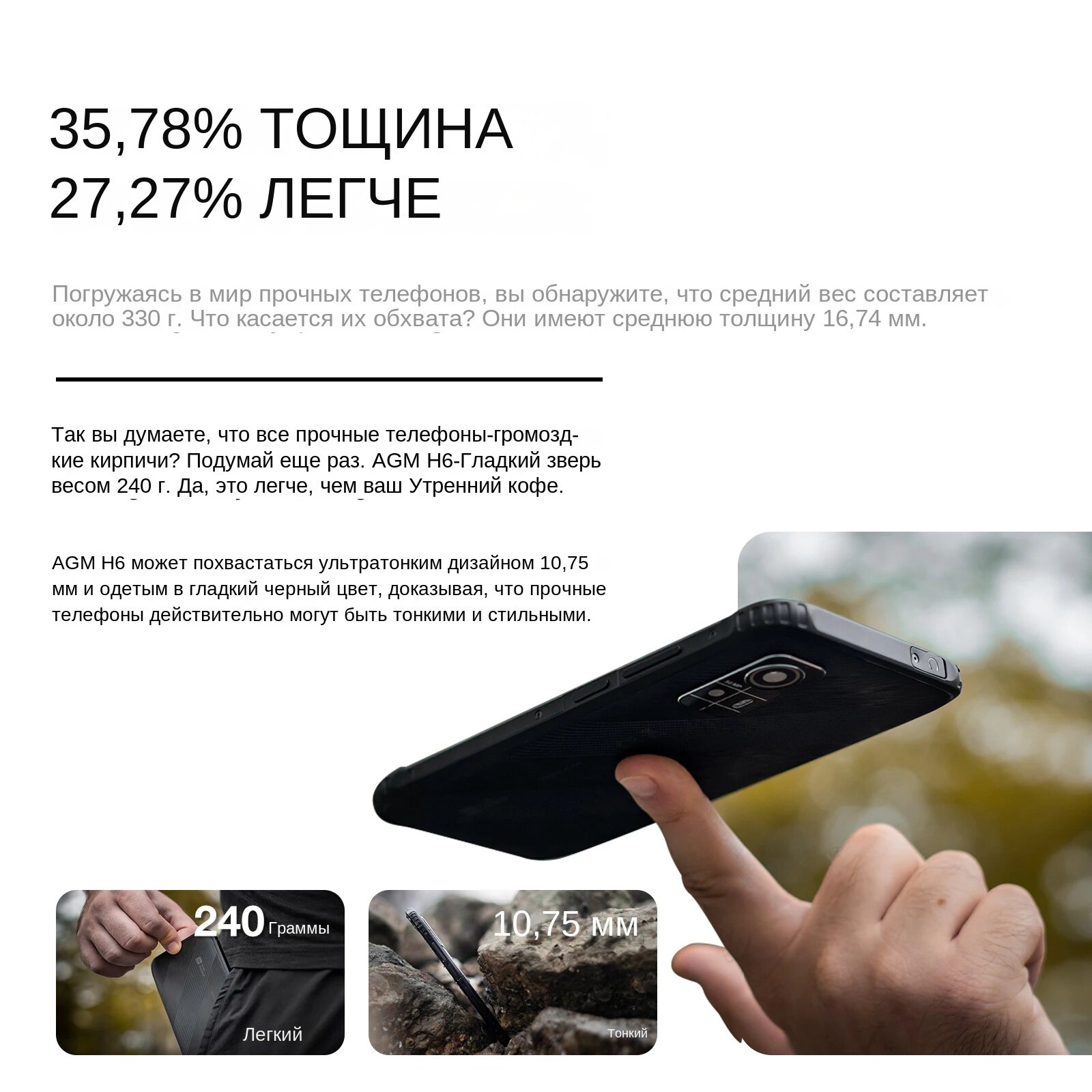 | Подробная комплектация | Смартфон AGM Н6 Light. Сетевое зарядное устройство для быстрой зарядки. Соединительный кабель USB Type-C. Инструкция на русском языке для AGM H6 Light. Гарантийный талон. |
