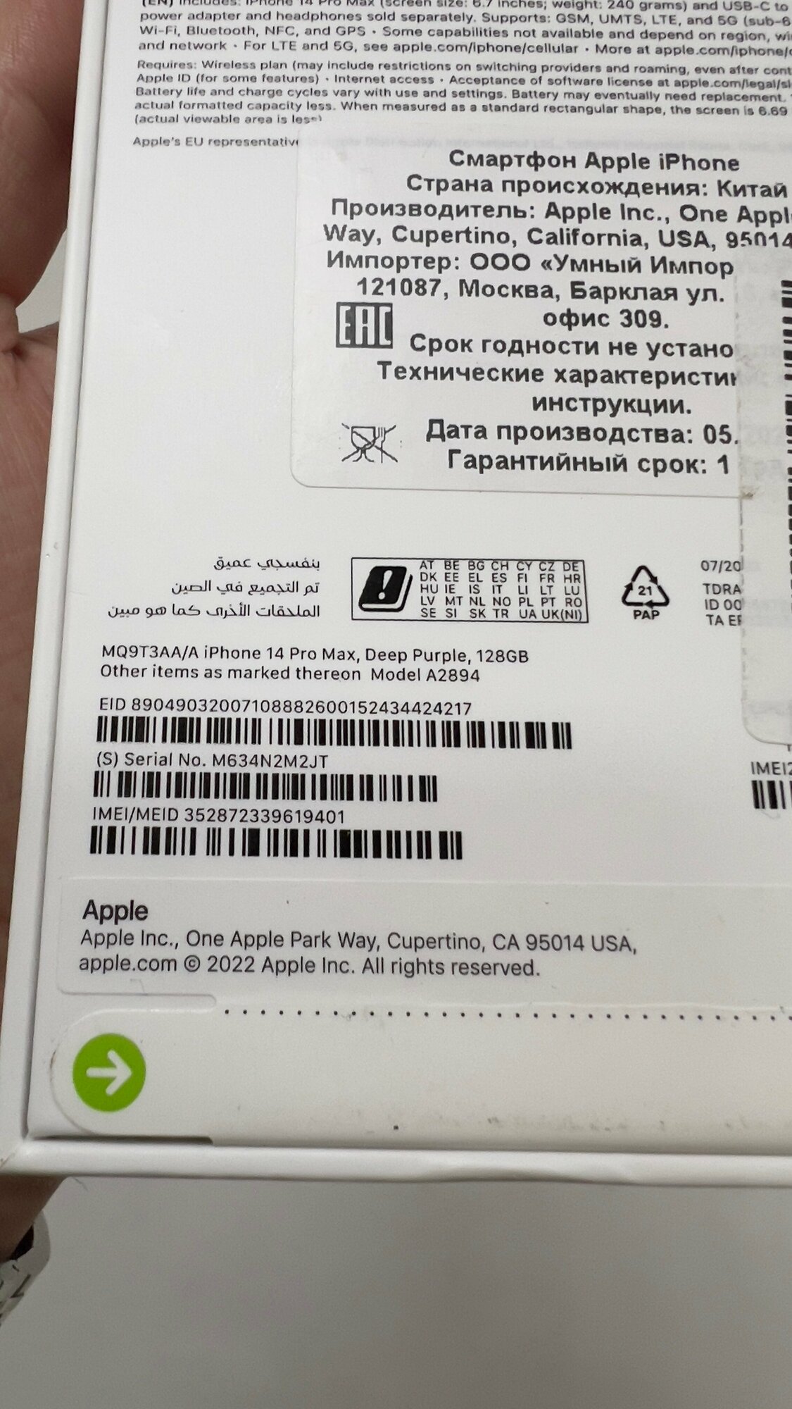 Купить Смартфон Apple iPhone 14 Pro Max 128 ГБ RU, Dual: nano SIM + eSIM, глубокий фиолетовый с доставкой по всей России.