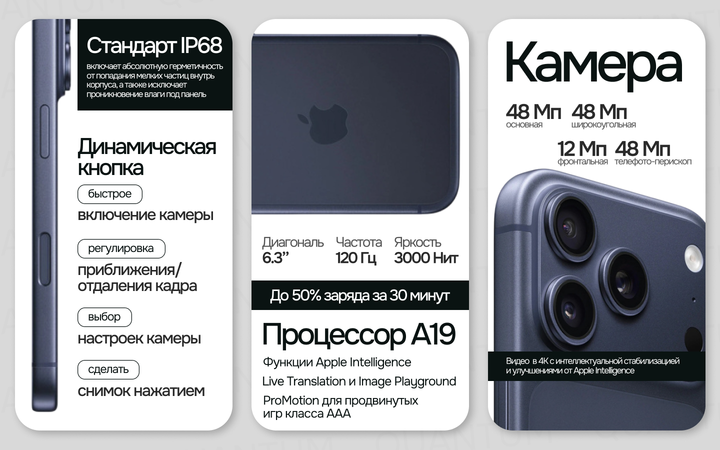 Смартфон Apple iPhone 17 Pro (Новый, Не активирован) 256GB (Dual eSim), Deep Blue (Синий) (без RuStore): сравнение цен, характеристики, фото, актуальное наличие и цены.