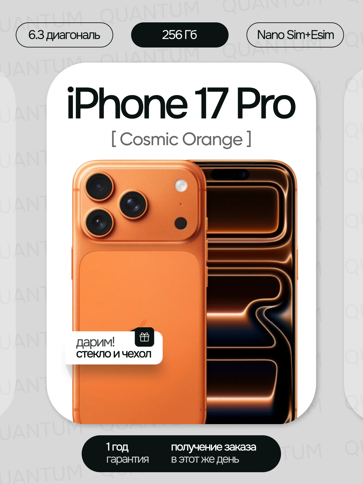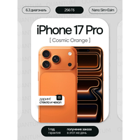 Смартфон Apple iPhone 17 Pro (Новый, Не активирован) 256GB (Nano Sim + eSim), Cosmic Orange (Оранжевый) (без RuStore): сравнение цен, характеристики, фото, актуальное наличие и цены.