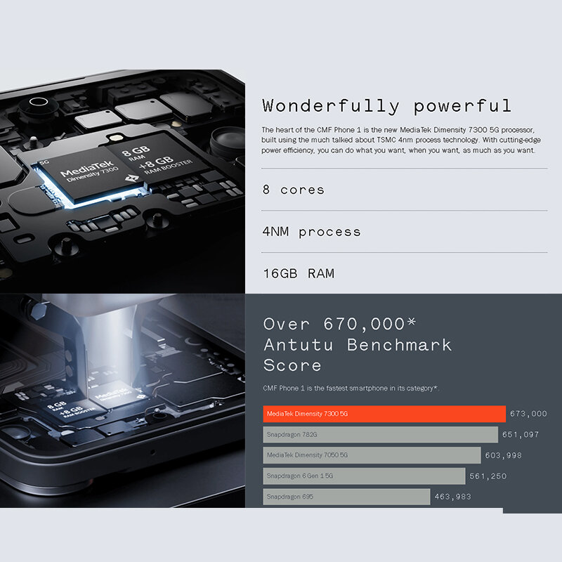 | Подробная комплектация | смартфон CMF Phone 1, кабель USB-C, защитная пленка(нанесена на экран), SIM инжектор, документация |