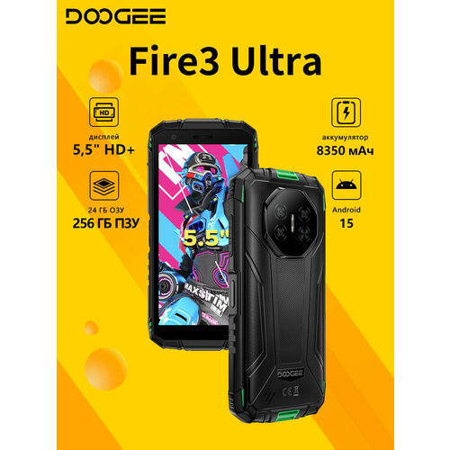 Купить Смартфон DOOGEE Fire 3 Ultra 6/256 ГБ,5,5″, 8350 мАч ,20 МП камера ночного видения, Android 15, NFC, Зелёный с доставкой по всей России. Смартфон DOOGEE Fire 3 Ultra 6/256 ГБ,5,5″, 8350 мАч ,20 МП камера ночного видения, Android 15, NFC, Зелёный: сравнение цен, характеристики, фото, актуальное наличие и цены.