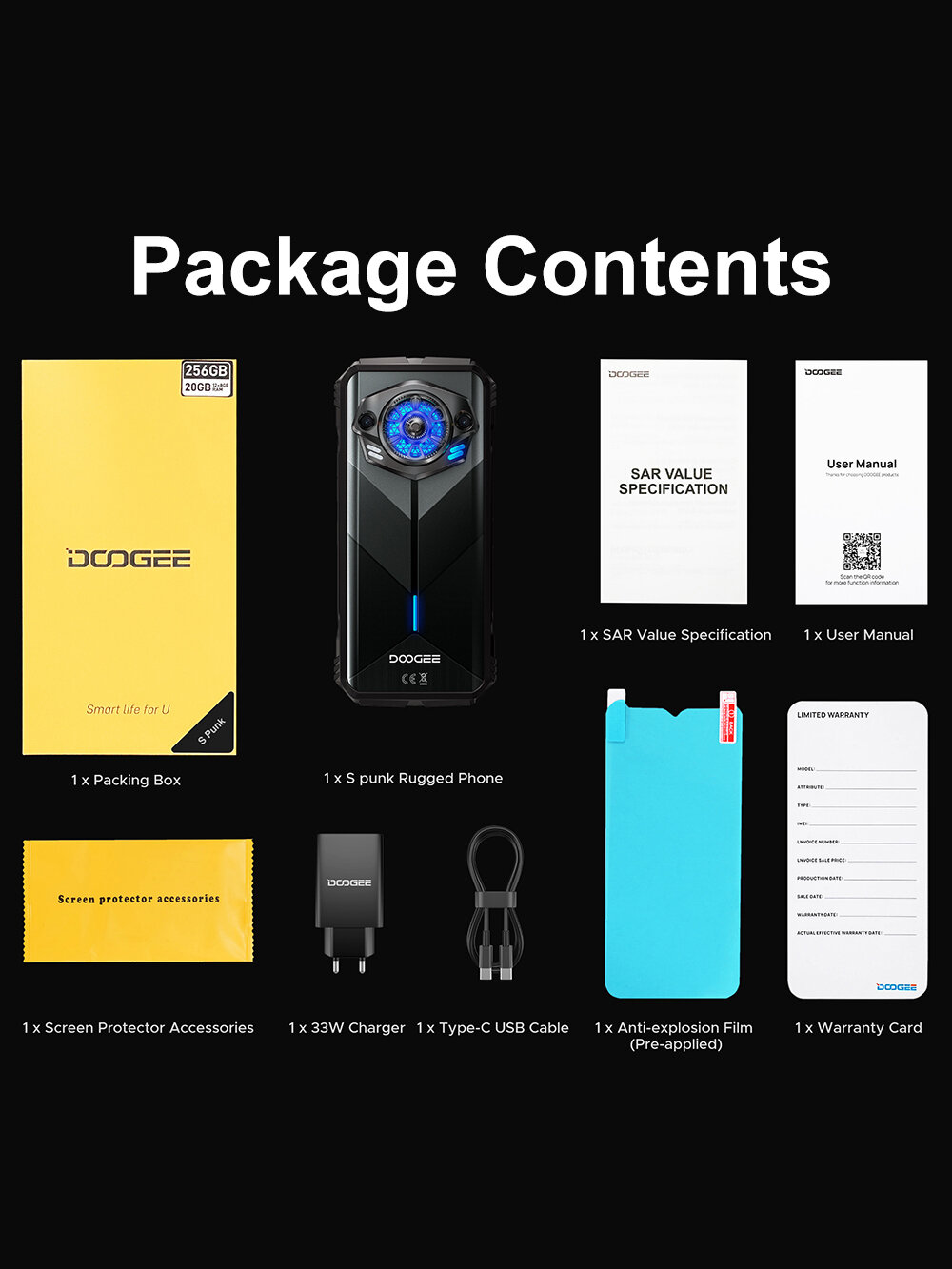 | Подробная комплектация | 1 * Телефон S Punk Pro; 1 * Кабель USB Type-C; 1 * Вилка EU; 1 * Противовзрывная пленка (предварительно нанесена); 1 * Руководство пользователя; |