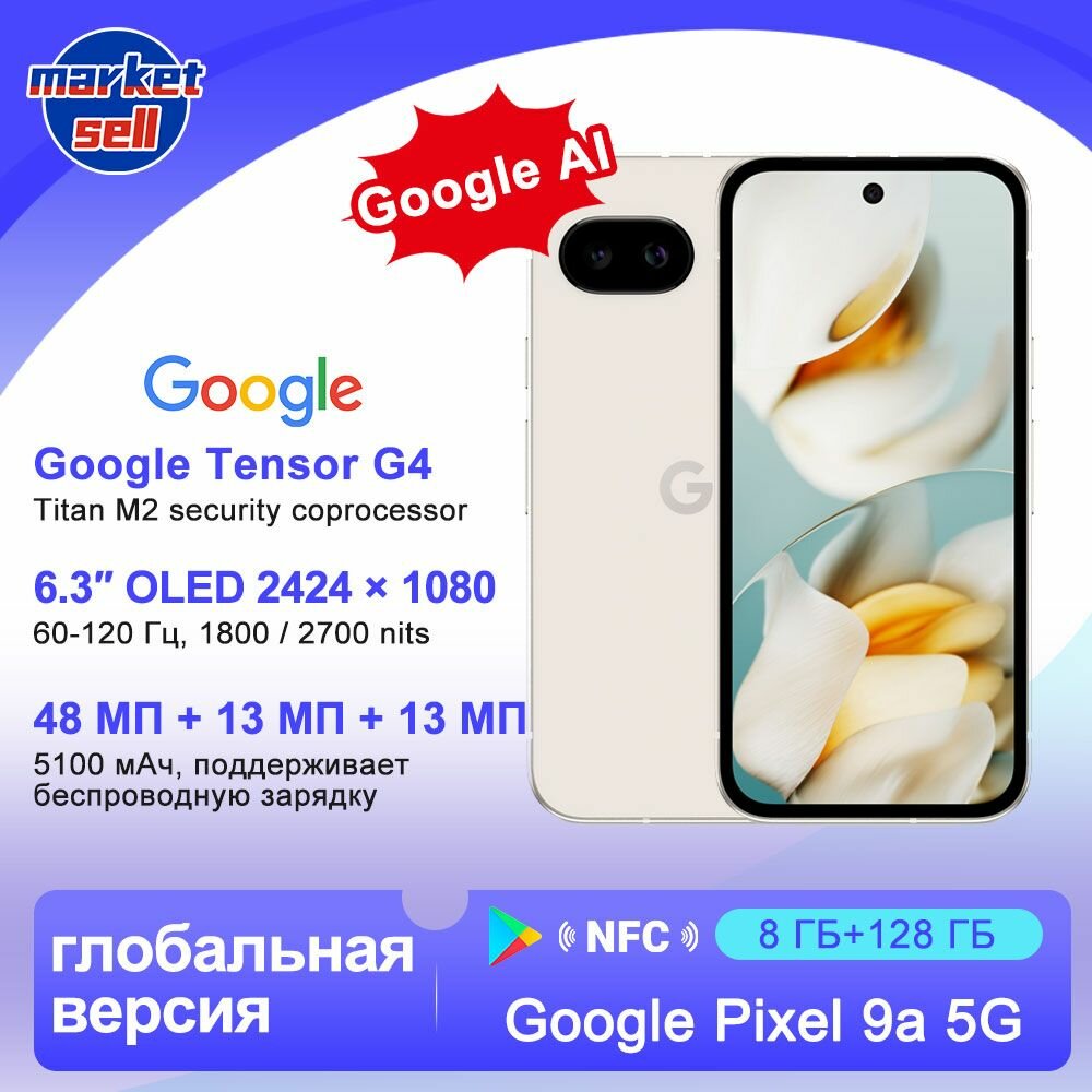 Смартфон Google Pixel 9a 8 ГБ/128 ГБ, Porcelain, белый, NFC, Tensor G4: сравнение цен, характеристики, фото, актуальное наличие и цены.