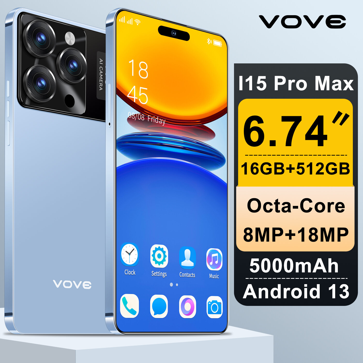 Смартфон i15 pro max, 16/512GB, 2 micro-SIM, Android 13,Синий — наушники в подарок бесплатно!