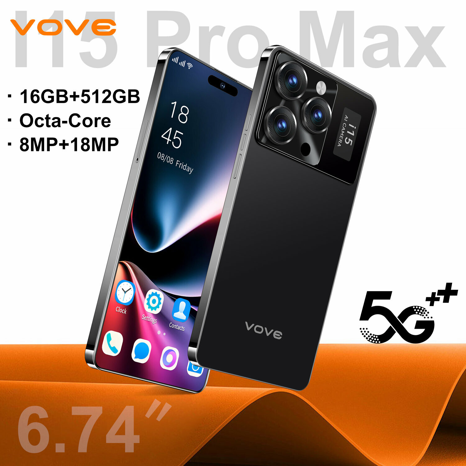 | Дополнительная информация | Смартфон VOVE i15 pro max, адаптер питания, инструмент для извлечения SIM-карты, закаленная пленка, чехол, кабель USB Type-C |