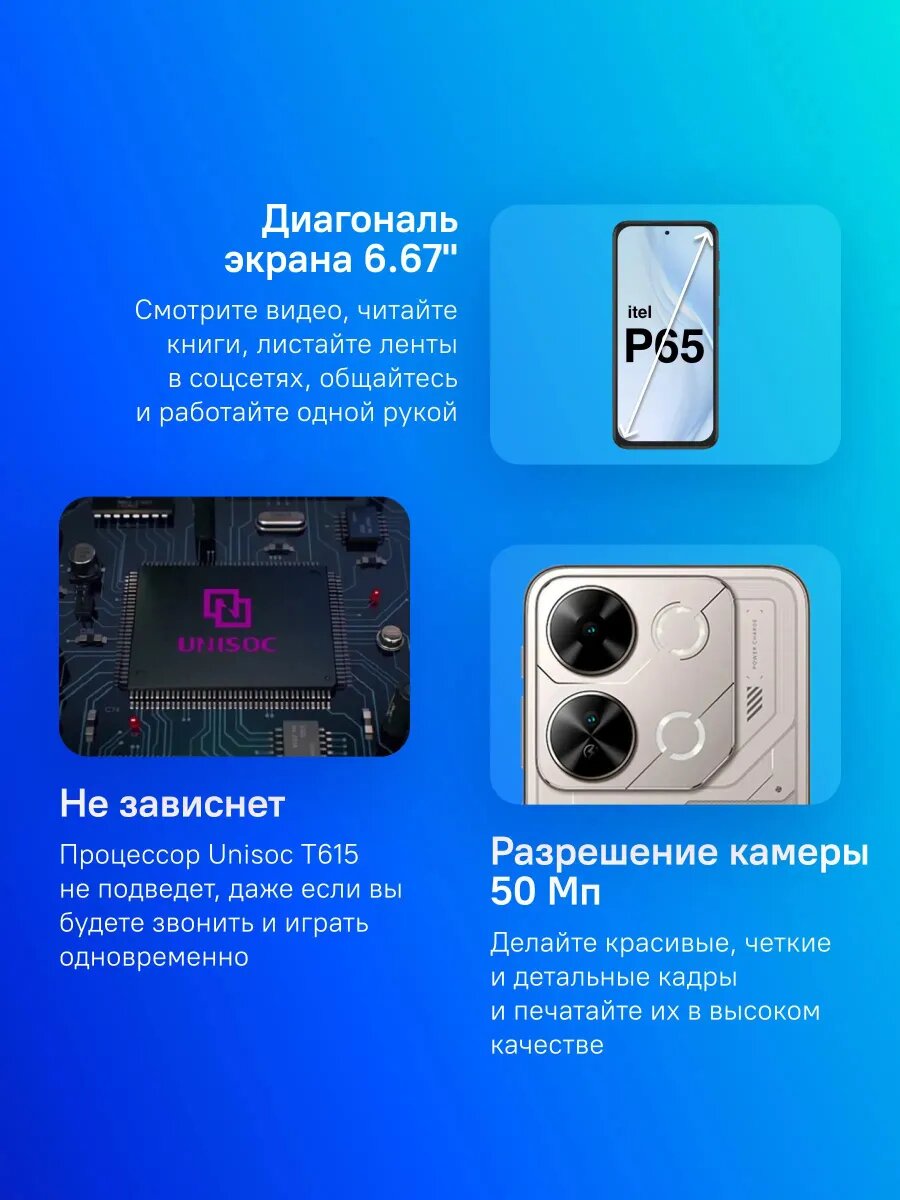 Смартфон Itel P65 6/256Gb, титан / светло — серый / Ростест / 6.67 / IPS HD /: сравнение цен, характеристики, фото, актуальное наличие и цены.