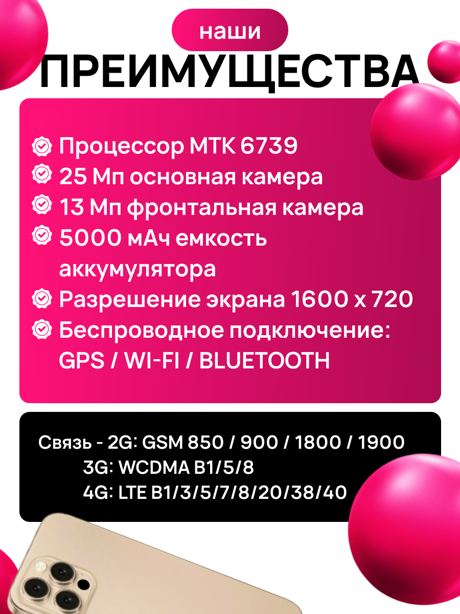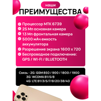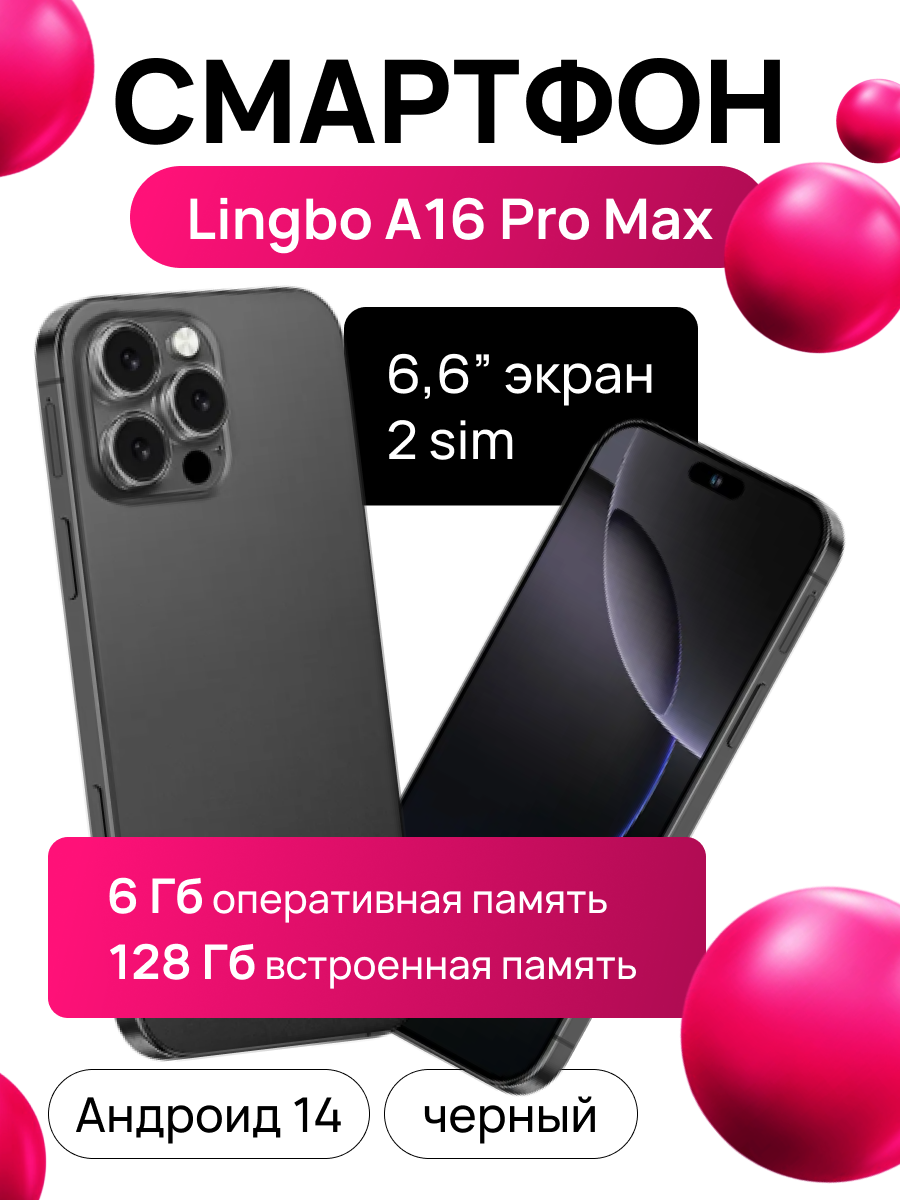 Смартфон андроид Lingbo A16 Pro Max имеет 2 SIM карты, встроенную память 128 ГБ, фронтальную камеру 13 Мп, основную камера 25 Мп, оперативную память 6 ГБ.