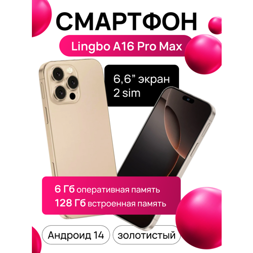 Купить Смартфон Lingbo A16 Pro Max, 6+128 Гб, золотой, экран 6.6″ 60Гц, 25Мп, 13Мп с доставкой по всей России.