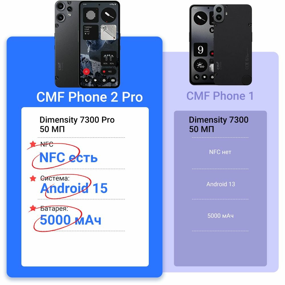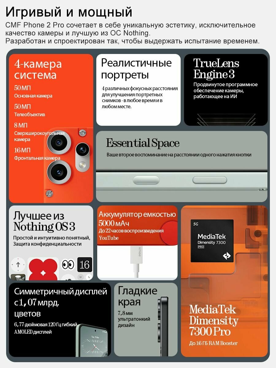 Смартфон Nothing CMF Phone 2 Pro, глобальная версия, 8 ГБ+128 ГБ, белый: сравнение цен, характеристики, фото, актуальное наличие и цены.