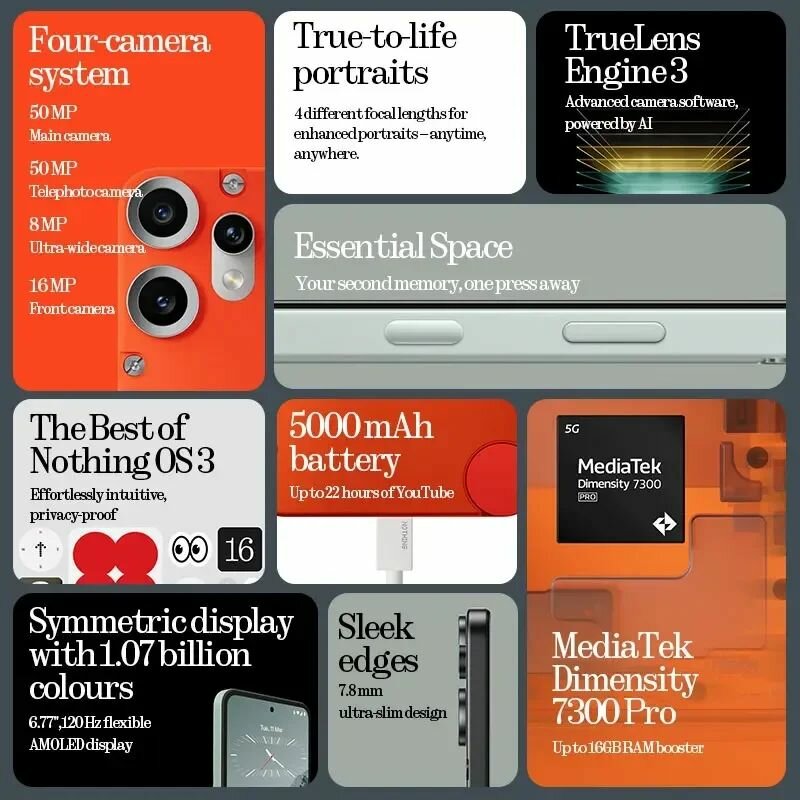 Смартфон Nothing CMF Phone 2 Pro, 8/256Gb, Global, Black (Черный): сравнение цен, характеристики, фото, актуальное наличие и цены.