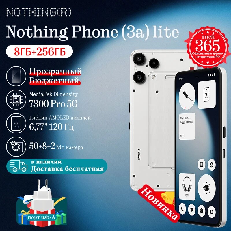 Смартфон NOTHING Phone (3a) Lite, 8/256ГБ: сравнение цен, характеристики, фото, актуальное наличие и цены.