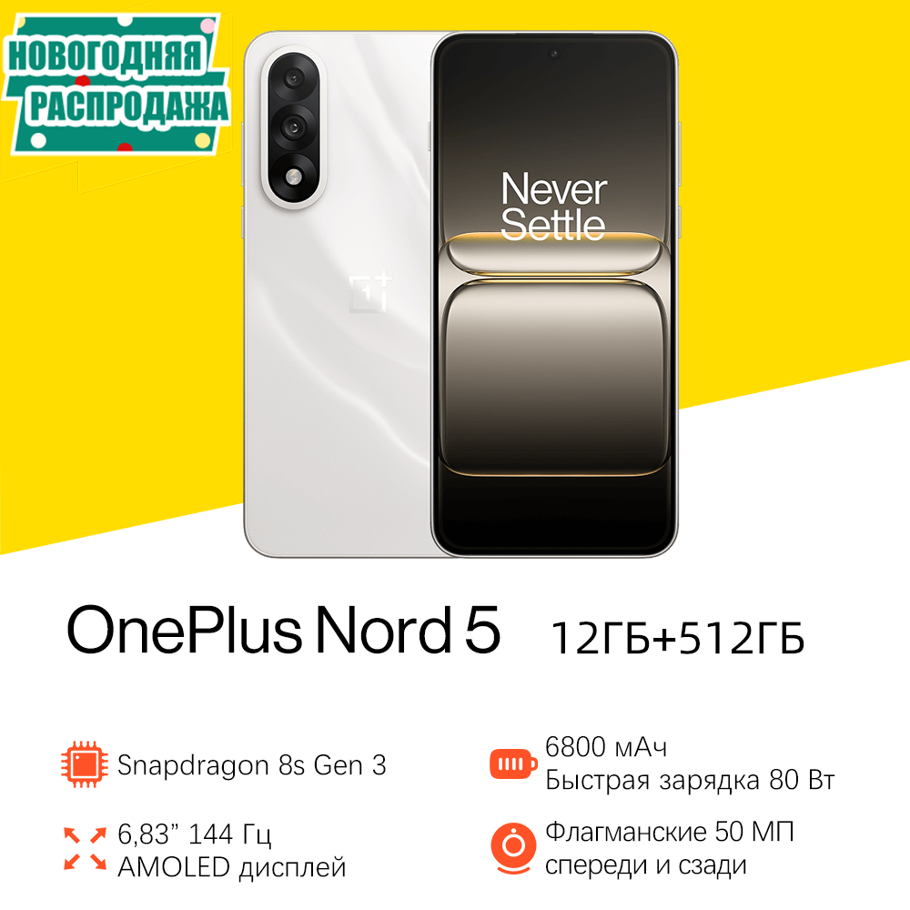 Смартфон OnePlus Nord 5 5G NFC, 6800 мА·ч 80 Вт, камеры 50 Мп Global 12/512 ГБ, белый: сравнение цен, характеристики, фото, актуальное наличие и цены.
