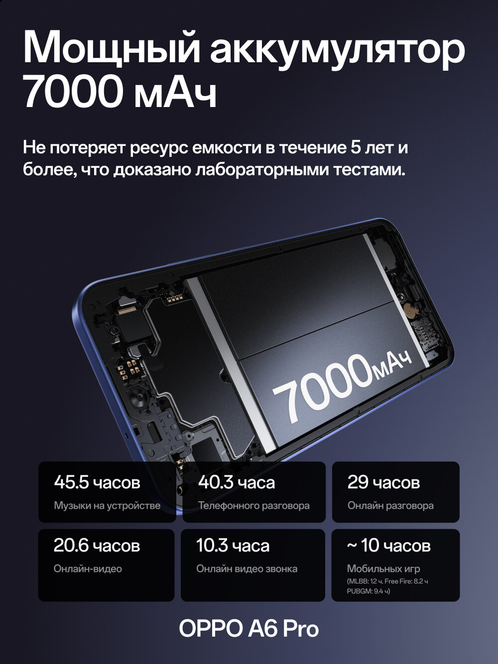 Смартфон OPPO A6 Pro 8/256, звездный синий, класс защиты IP69, 7000 мАч: сравнение цен, характеристики, фото, актуальное наличие и цены.