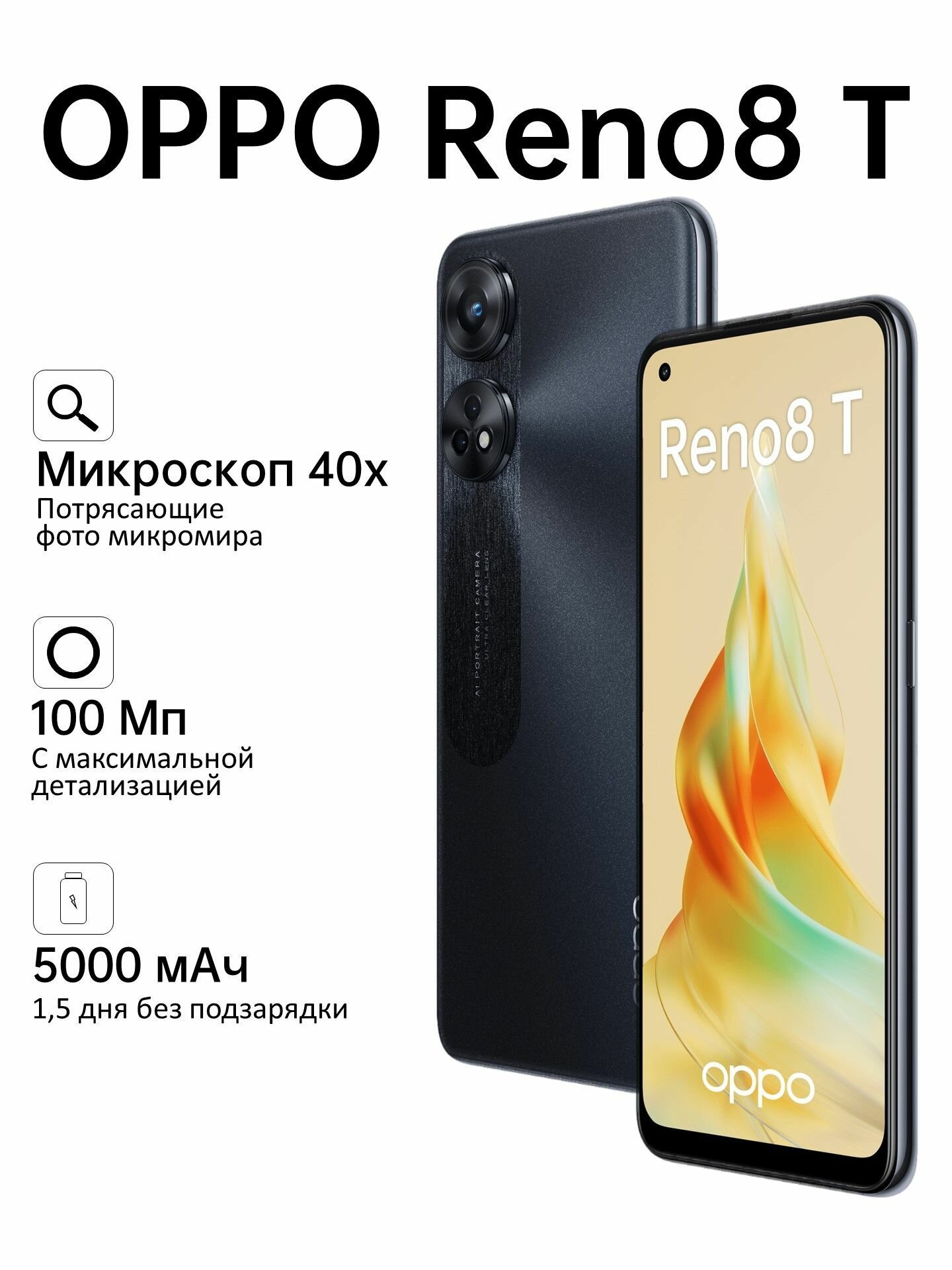 Смартфон OPPO Reno8 T 8/256GB, черный: сравнение цен, характеристики, фото, актуальное наличие и цены.