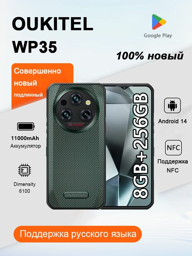 Купить Смартфон oukitel WP35, 8/256 ГБ, Зелёный с доставкой по всей России.