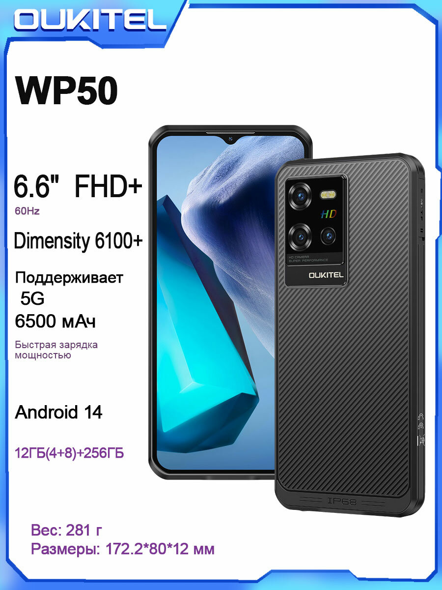 Смартфон Oukitel WP50 12 ГБ(4+8) 256 ГБ,6500 мАч,5G, NFC, Черный: сравнение цен, характеристики, фото, актуальное наличие и цены.