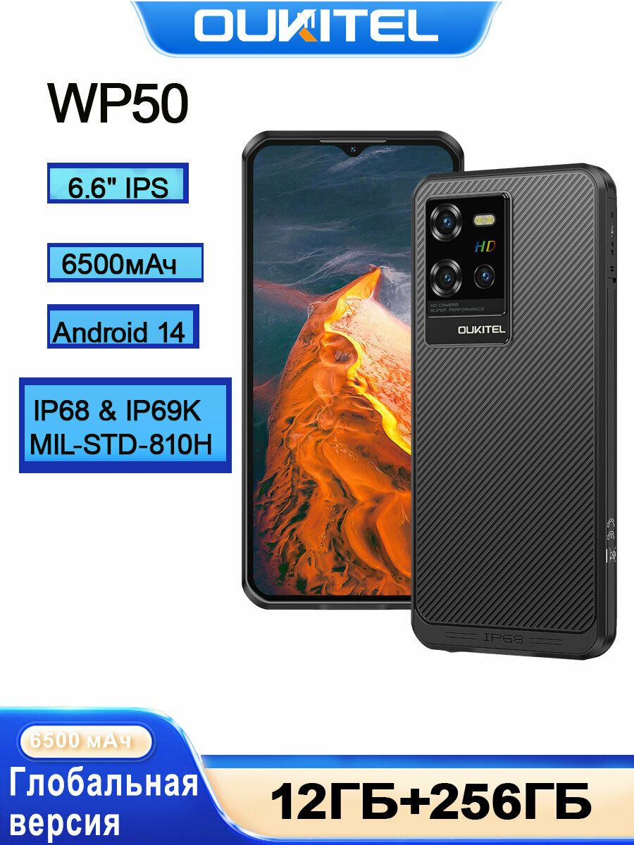 Купить Смартфон Oukitel WP50 12 ГБ(4+8) 256 ГБ,6500 мАч,5G, NFC, Черный с доставкой по всей России.
