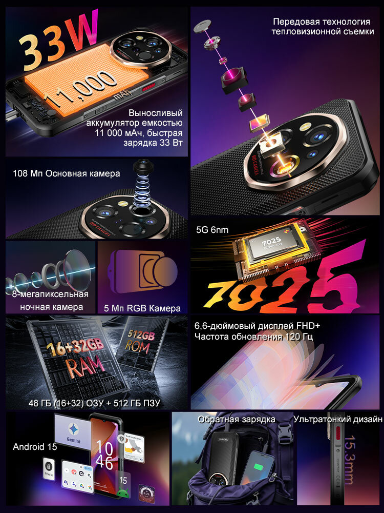 Смартфон OUKITEL WP55 Ultra тепловидение 48ГБ (16+32)+512 ГБ, черный: сравнение цен, характеристики, фото, актуальное наличие и цены.