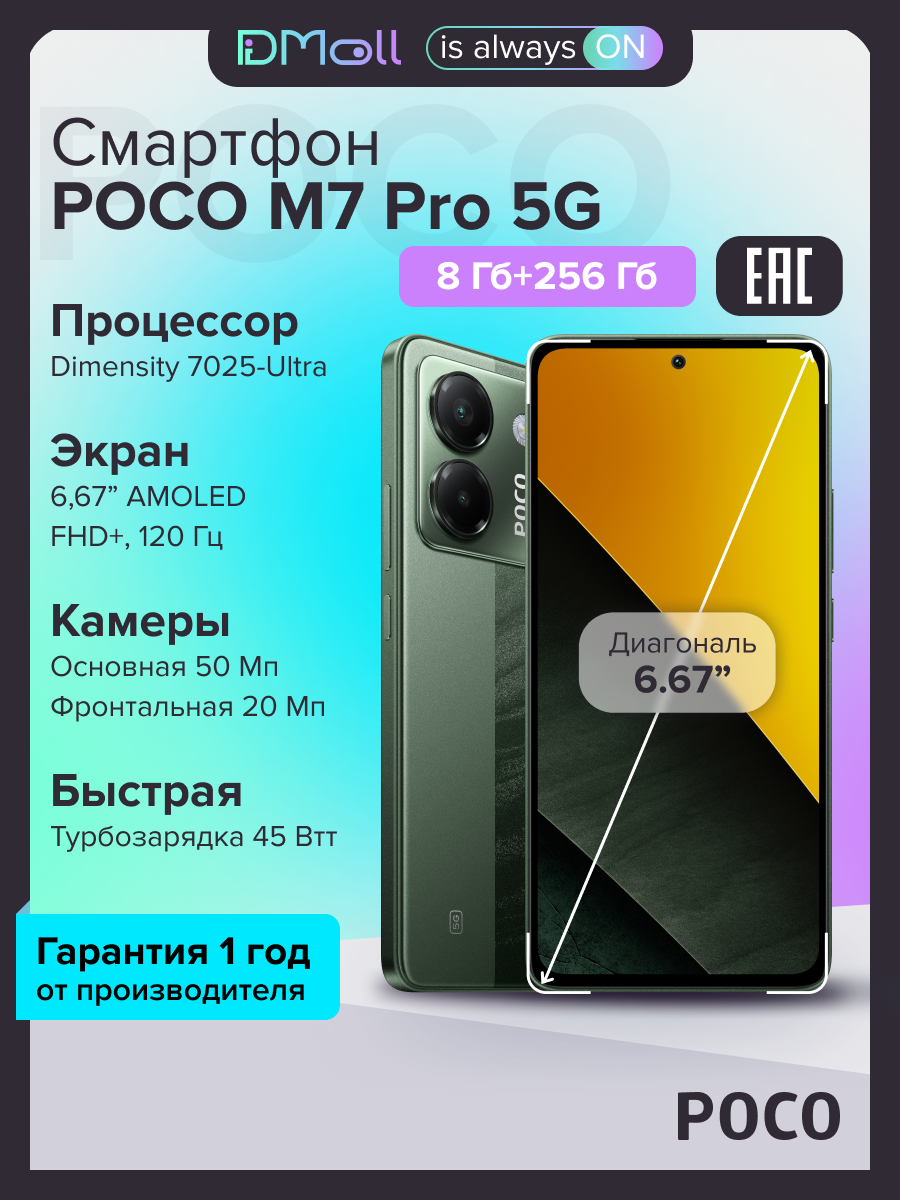 Купить Смартфон POCO M7 Pro 5G Зеленый 8/256ГБ с доставкой по всей России.