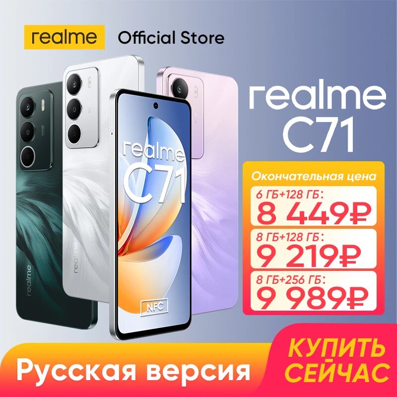 Телефон Realme C71 с модельным номером RMX5303 работает под управлением Android 15 и оснащен процессором UNISOC T7250 (известен также как T615), который включает восемь ядер: два Cortex-A76 с частотой до 1,82 ГГц и шесть Cortex-A55 с частотой 1,61 ГГц, графический процессор - Mali-G57. Объем встроенной памяти составляет 128 ГБ, объем оперативной памяти - 8 ГБ. Поддерживает работу в сетях стандарта 4G LTE.