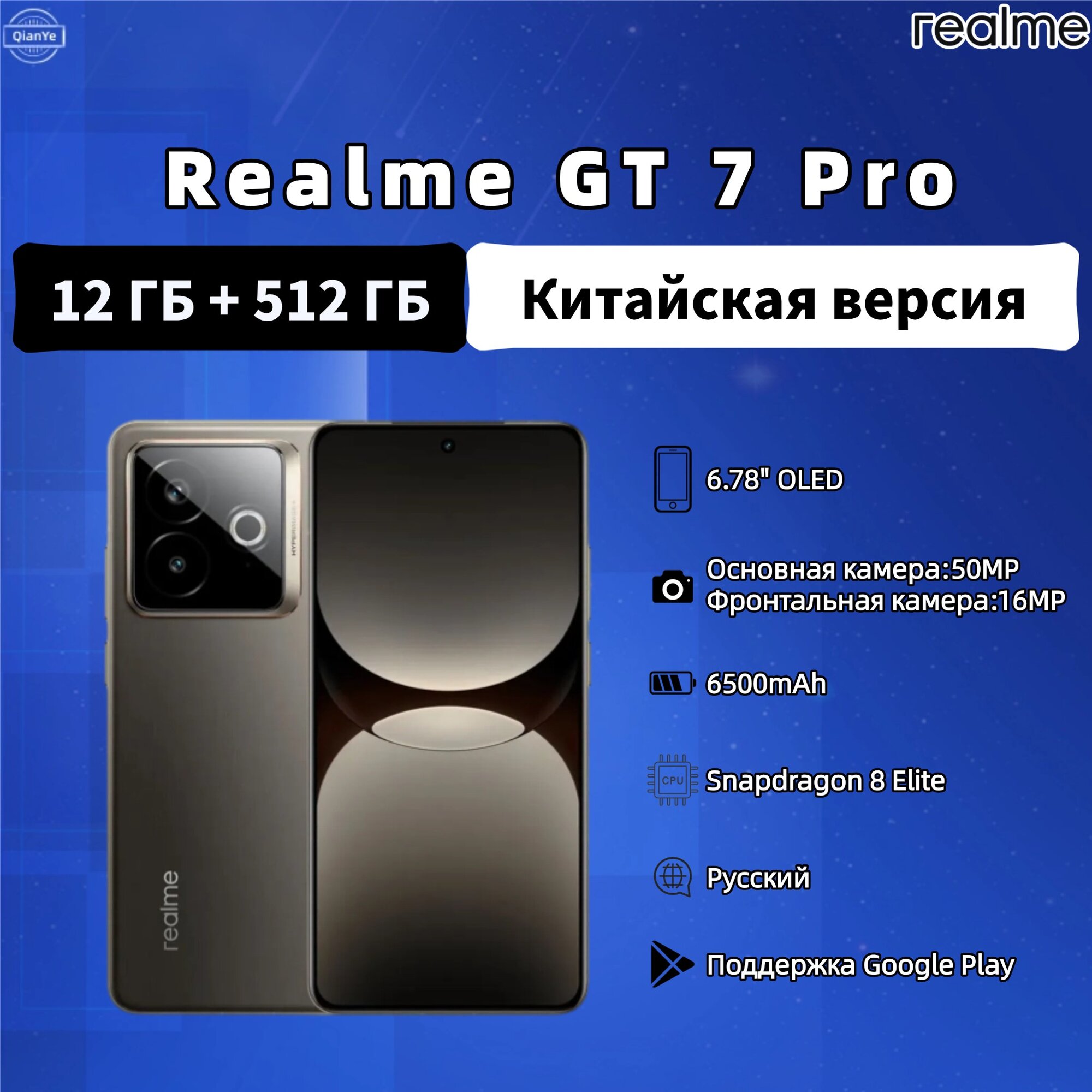 Смартфон Realme gt7 pro, CN, 12/512 ГБ, 5G, NFC, IP69, 6500mAh, Поставляется с русским, Dual Nano Sim, серый: сравнение цен, характеристики, фото, актуальное наличие и цены.