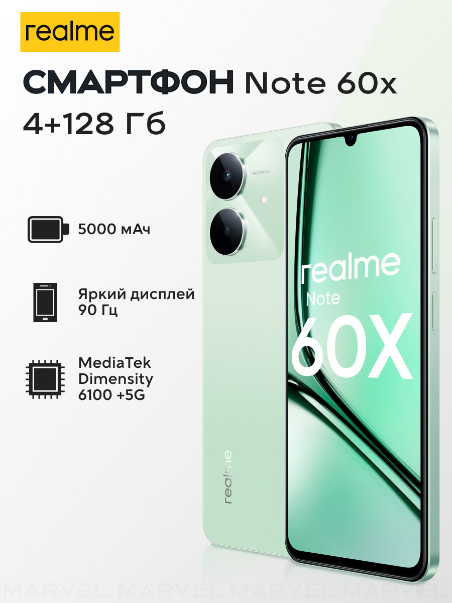 Смартфон REALME Note 60x, 4/128 Gb, Ростест (EAC), Зеленый: сравнение цен, характеристики, фото, актуальное наличие и цены.