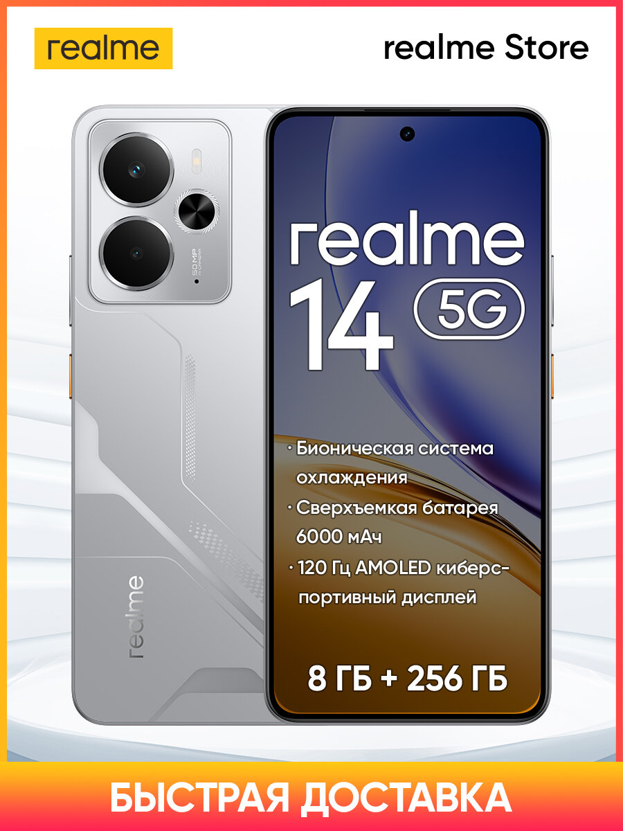 Купить Смартфон realme RMX5070 (14 5G) 8 + 256 ГБ цвет: серебряный с доставкой по всей России.
