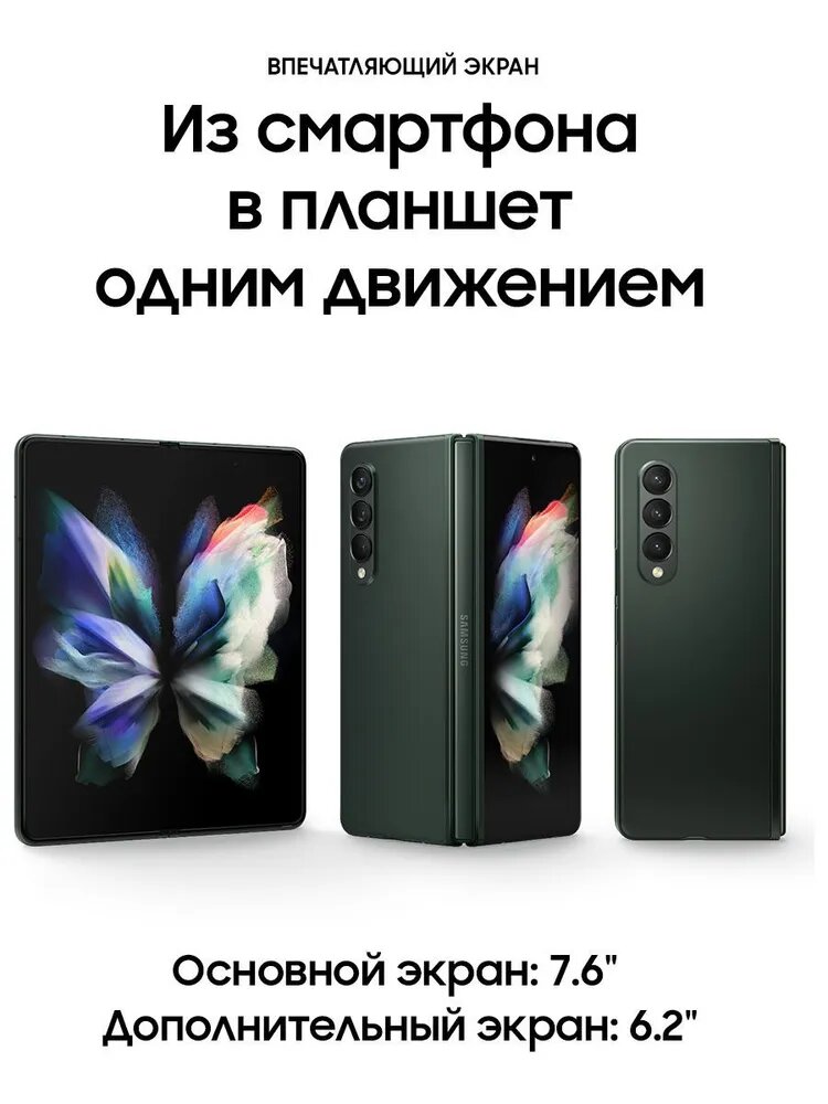 Купить Смартфон Samsung Galaxy Z Fold 3, 12+256ГБ, nano SIM+eSIM, Зелёный с доставкой по всей России.