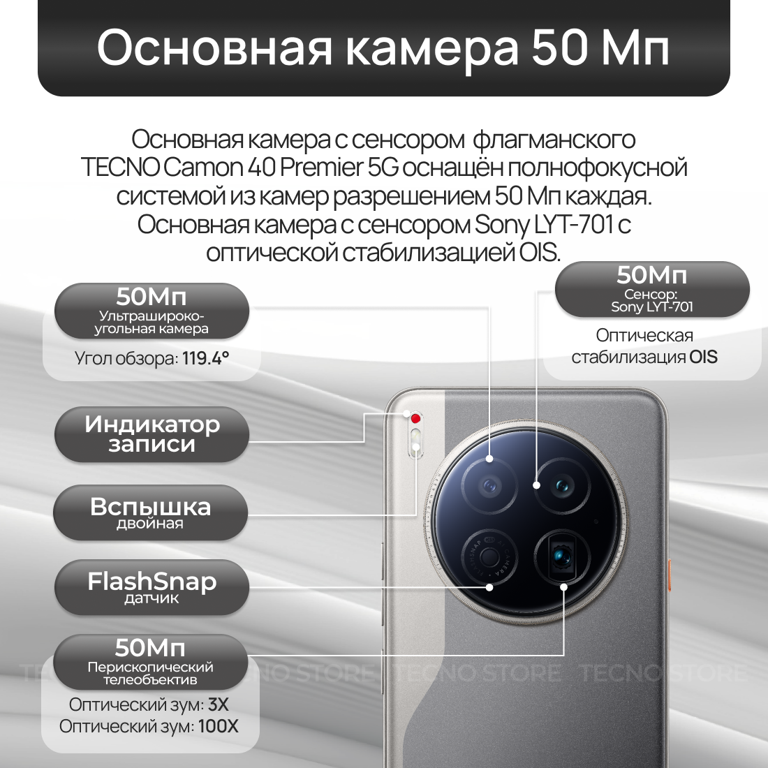 | Разрешение основной камеры (точно) | 50 Мпикс |
