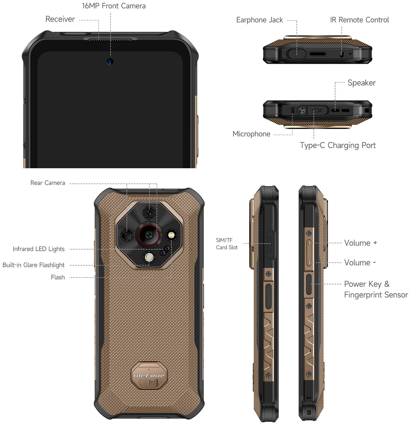 Смартфон Ulefone Armor X16, 6/128Гб, Android 13, IP68/IP69K, 90Гц, бежевый