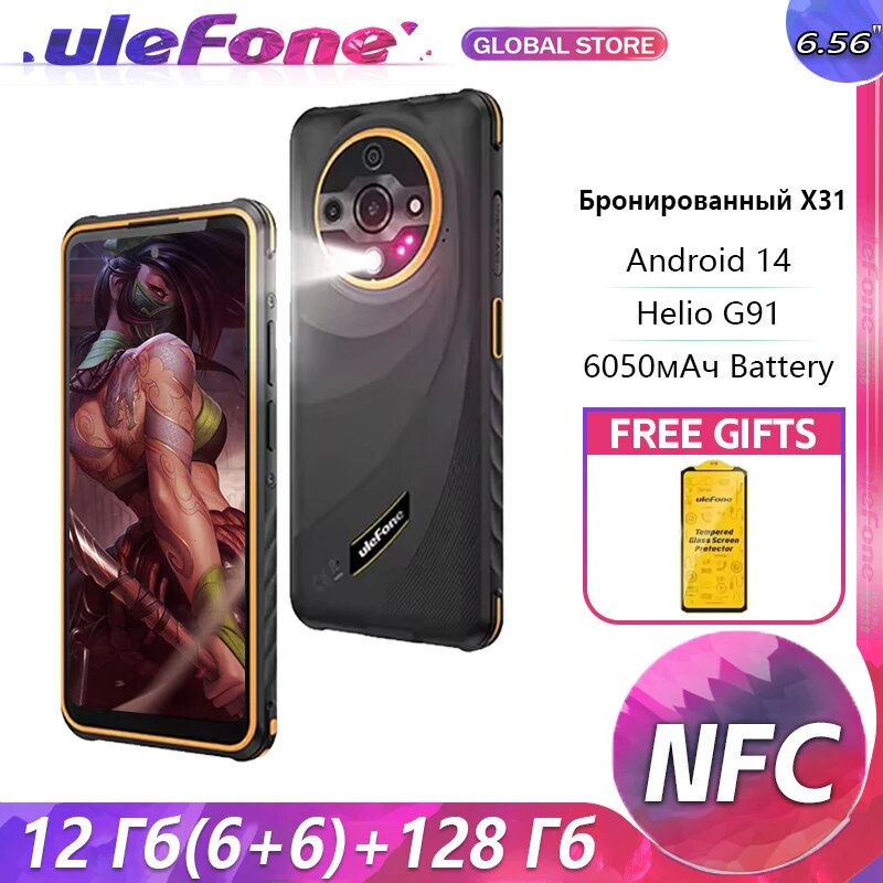 Прочный телефон Ulefone Armor X31 5G, 6 ГБ + 128 ГБ, 6,56 дюйма, ночная камера Android 14, 48 МП, 6050 мАч, Helio G91, NFC-смартфон Orange, Armor X31: сравнение цен, характеристики, фото, актуальное наличие и цены.