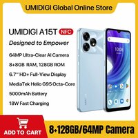 Смартфон UMIDIGI-A15T, Android 13, NFC Helio G95 8G + 128G 64MP AI, 8G 128G, Глобальная версия, Смартфон, Черный, 8ГБ, 128ГБ, global, Новый