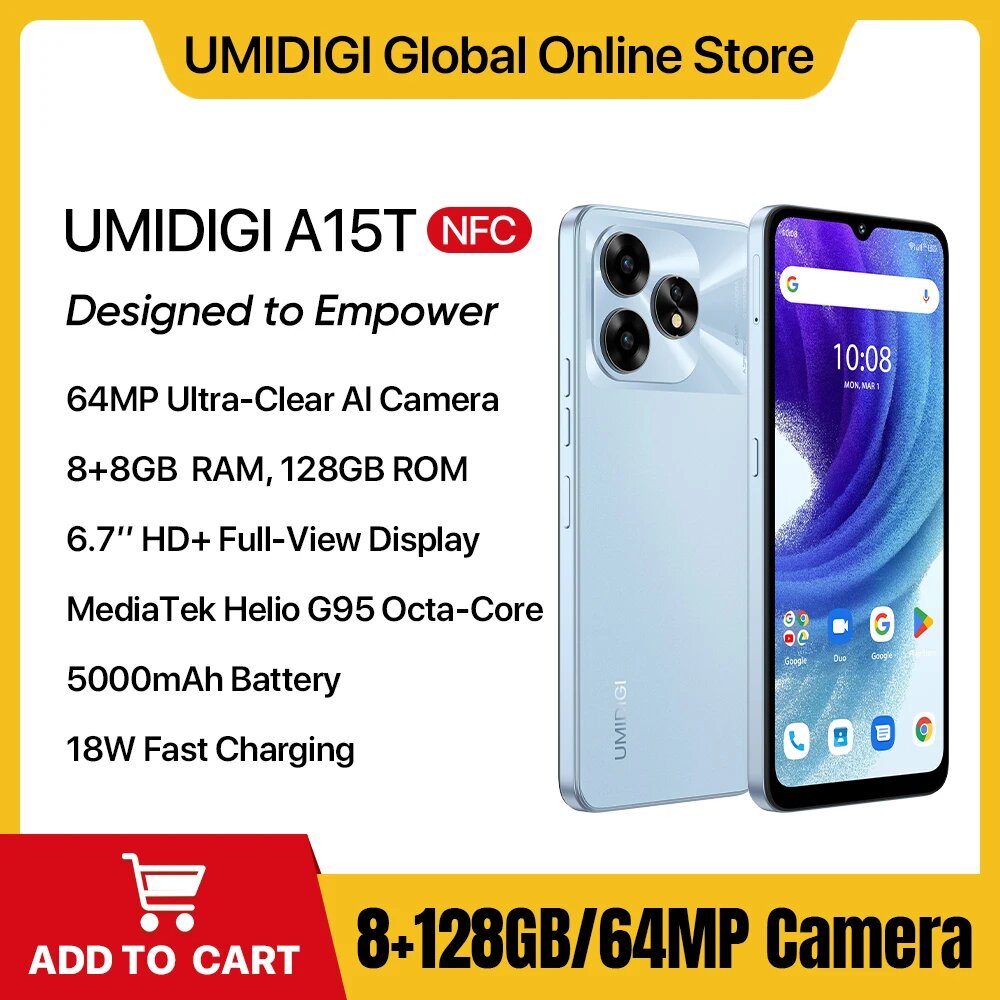 Смартфон UMIDIGI-A15T, Android 13, NFC Helio G95 8G + 128G 64MP AI, 8G 128G, Глобальная версия, Смартфон, Черный, 8ГБ, 128ГБ, global, Новый: сравнение цен, характеристики, фото, актуальное наличие и цены.