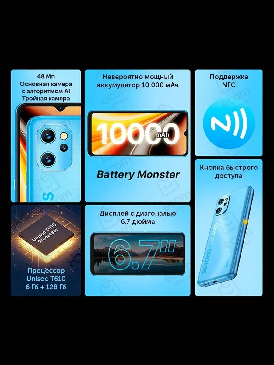 Смартфон UMIDIGI Power 7 Max 6+128G, 48Мп, Black (Reef Gray): сравнение цен, характеристики, фото, актуальное наличие и цены.