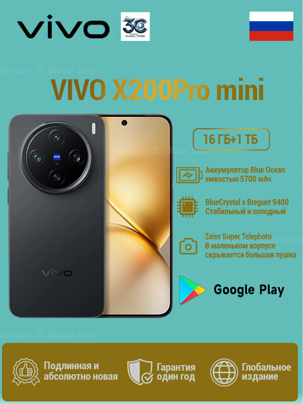 Смартфон VIVO X200 Pro Mini Первый в мире Dimensity 9400! 3nm техпроцесс, 12-ядерный GPU, +40% к скорости! 16/1, Черный: сравнение цен, характеристики, фото, актуальное наличие и цены.