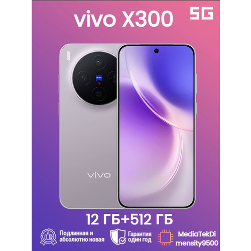 vivo x300 Китайская версия 5G NFC Vivo X300 5G CN Размер корпуса: небольшой прямоугольный экран диагональю около 6,31 дюйма с черными краями спереди толщиной около 1,05 мм (четыре равные стороны). Толщина: около 7,95 мм (самая тонкая часть корпуса) Вес: около 190 г Материал средней рамы: металлическая средняя рама (официальный представитель не указывает тип сплава) Материал задней крышки: стеклянная задняя крышка, различные технологические текстуры. Основной чип: MediaTek MediaTek DNT 9500 (3-нм техпроцесс,1+3+4 Полноценная архитектура с большим ядром) Суперядро: Travis 4,21 ГГц×1 Большое ядро: Alto 3,50 ГГц×3 Большое ядро / энергоэффективное ядро: Gelas 2,70 ГГц×4 Графический процессор: новое поколение малайских графических процессоров Сеть --- Полный сетевой доступ, двойное режим ожидания Dual-SIM