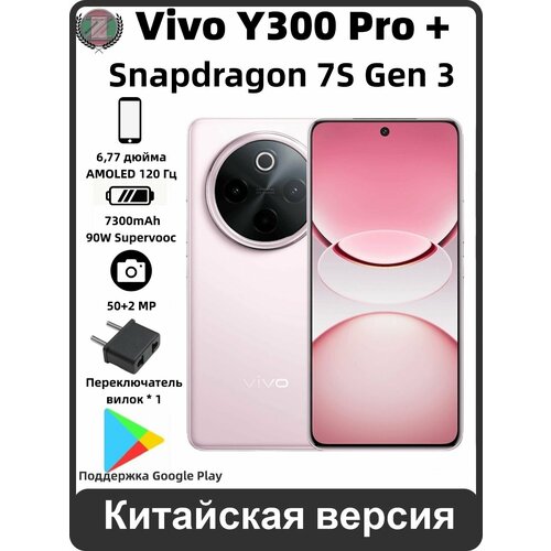Модель: VIVO Y300 Pro Plus 5G (китайская версия)Платформа: восьмиядерный 4-нм процессор Snapdragon 7S Gen 3 ; Графический процессор: Adreno 810ОПЕРАТИВНАЯ память: LPDDR4X; ПЗУ: UFS2.2Размер дисплея: 6,77 дюйма, 60/120 Гц, AMOLED-экран; разрешение: (2392x1080P); Камера: Задняя камера 50 Мп (OIS + EIS) + 2 Мп; Фронтальная камера: 32 МпБатарея: 7300 мАч (типичное значение), поддерживает зарядку мощностью 90 ВтОперационная система: OriginOS 5Сеть (поддержка 5G): 2 слота для карт NanoДиапазон частот2G GSM: 850/900/1800 МГц;3G WCDMA: B1/B5/B6/B8/B19;4G TD-LTE: B34/B38/B39/B40/B41/B42/B48;4G FDD-LTE: B1/B3/B5/B8/B19/B28A;5G: n1 /n3 /n5 / n8 /n28A /n38/n40 /n41/n48/n77/n78. Примечание: Доступность сетевых функций в режиме реального времени зависит от доступности сети оператора, развертывания инфраструктуры и версии программного обеспечения телефона. Размер и вес: В * Ш*T:163.4mm ×76,4 мм×7,93 мм;Вес: 199 гДругие функции: NFC, отпечаток пальца на экране / Функция пробуждения по лицу / Bluetooth 5.2 / USB Type-C / OTGСенсор: Датчик ускорения, Датчик освещенности, Датчик приближения, Гироскоп, Электронный компас, Инфракрасный пульт дистанционного управленияПодключение: Поддержка WLAN 2.4G, WLAN 5.1G, WLAN 5.8G, Дисплей Wi-Fi, Wi-Fi 6Технологии определения местоположения: GPS (L1 + L5), AGPS, Beidou (B1C +B1I +B2a), Глонасс (G1), GALILEO (E1+E5a), QZSS (L1+L5)